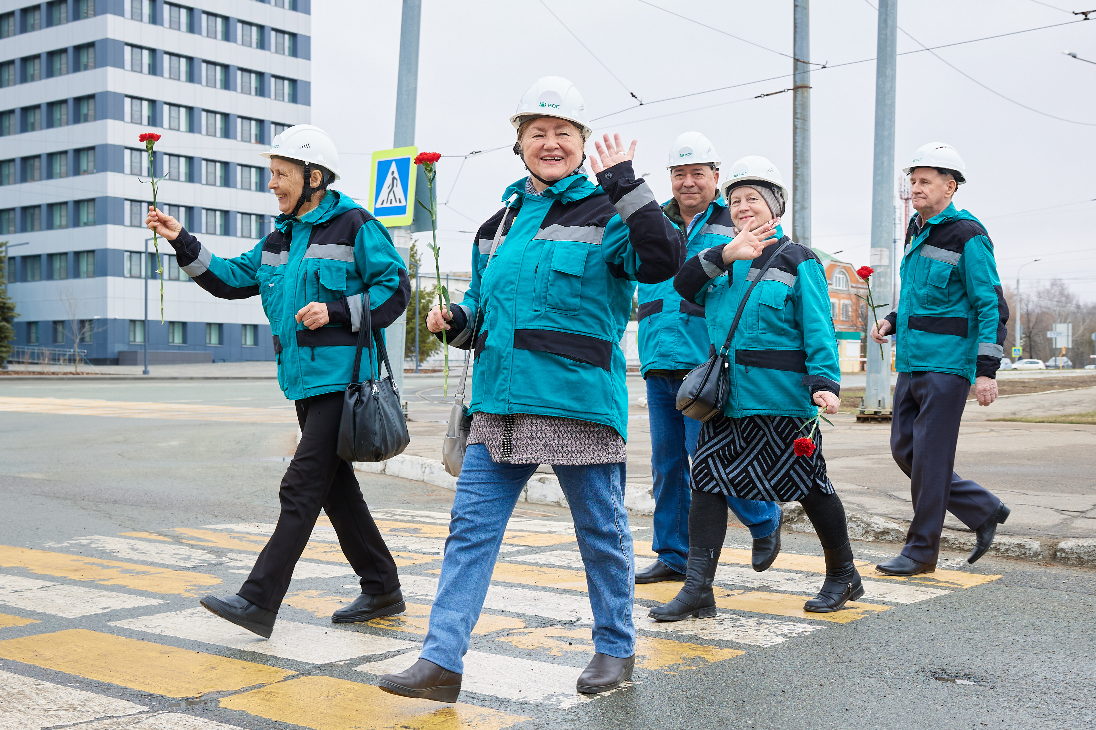 Заключительной точкой маршрута стала остановка у завода поликарбонатов. Здесь гостей ждали яркие ресиверы, расписанные весенними тюльпанами. Общее фото стало символом преемственности поколений и любви к заводу.
