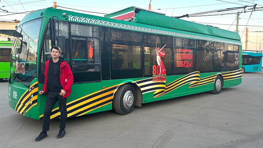 В Казани студент из Луганска украсил троллейбус к 80-летию Великой Победы. Об этом сообщили в пресс-службе МУП «Метроэлектротранс».