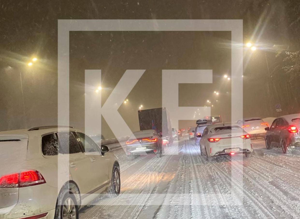 Сильная непогода накрыла Казань вечером 16 февраля. По этой причине в городе образовались большие пробки.