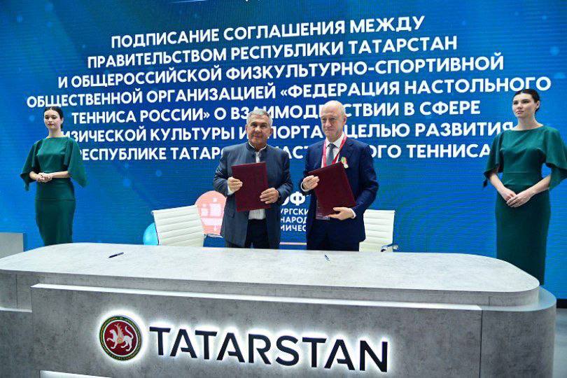 Рустам Минниханов на полях Петербургского международного экономического форума подписал соглашение о развитии настольного тенниса в Татарстане. Документ подписан при непосредственном участии физкультурно-спортивной общественной организации «Федерация настольного тенниса России».