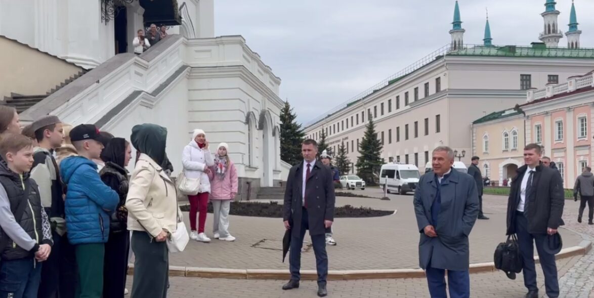 С туристами у Казанского Кремля пообщался раис Татарстана Рустам Минниханов. Он поделился этим в своём телеграм-канале.