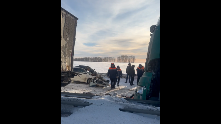Раскуроченная легковушка и 2 фуры: под Елабугой произошло жесткое ДТП — видео