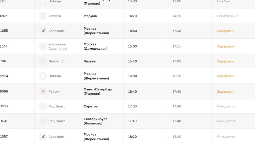 Из-за плана «ковра» рейс N4 706, следовавший из Махачкалы в Казань, был задержан. Регистрация была запланирована на 13:40, но перенеслась на 15:05. Сейчас авиарейс задержан до 17:05.
