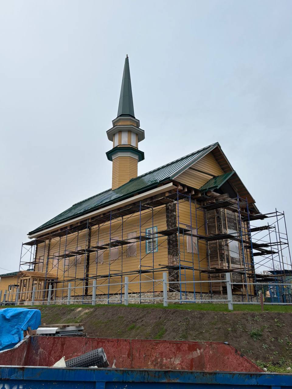 Ключевой этап работ уже успешно пройден: несущие конструкции крыши полностью укреплены, смонтировано современное кровельное покрытие, а исторический шатровый минарет вновь украшает силуэт села. В настоящее время ведется подготовка фасадов к облицовке, устанавливаются окна и монтируется водосточная система.