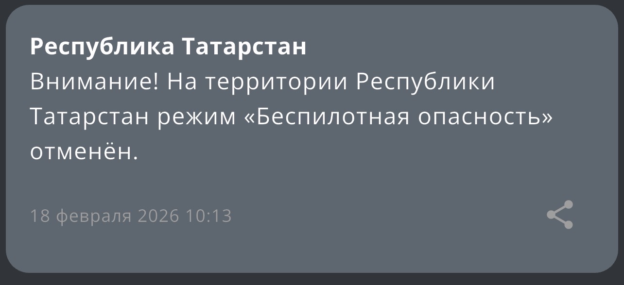 В Республике Татарстан отменили режим «Беспилотная опасность». Соответствующие данные следуют из официального приложения МЧС России.