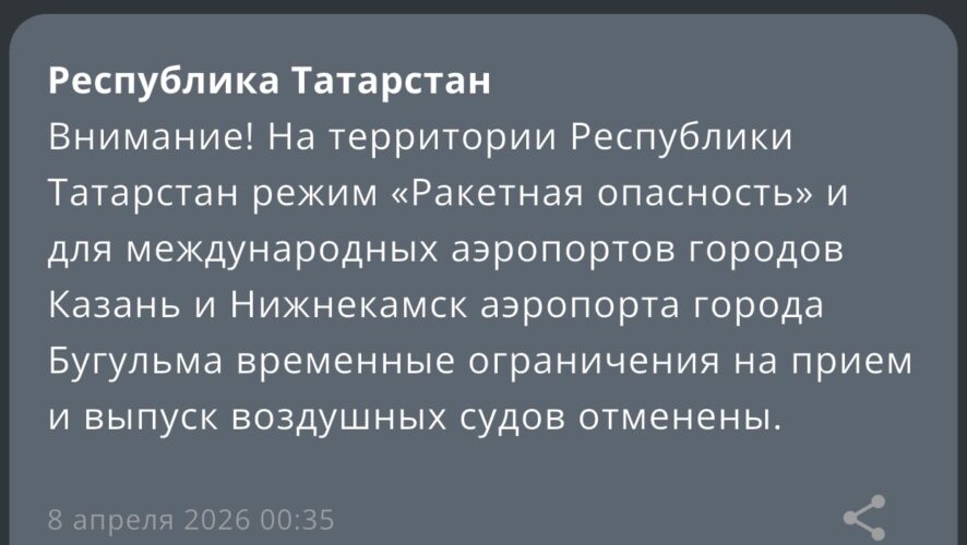 Читайте также: Режим ракетной опасности ввели в Татарстане