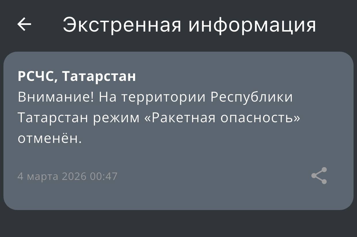 Режим «Ракетная опасность» отменили в Татарстане. Об этом сообщает МЧС России.