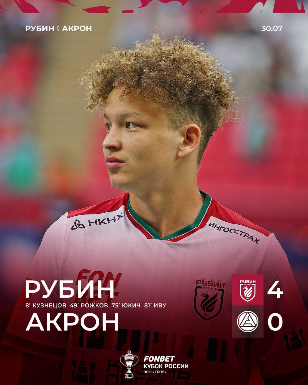 Казанская футбольная команда «Рубин» обошла «Акрон» со счетом 4:0 в первом матче Кубка России. Об этом сообщила пресс-служба команды.