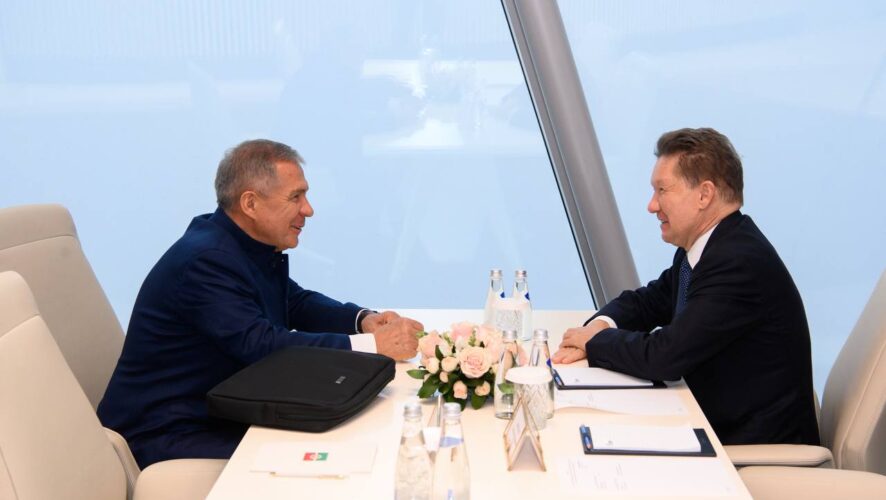 Сегодня в Санкт-Петербурге состоялась рабочая встреча Рустама Минниханова и Председателя Правления ПАО «Газпром» Алексея Миллера. На встрече обсуждались проекты, реализуемые компанией в Татарстане, сообщает пресс-служба раиса РТ.