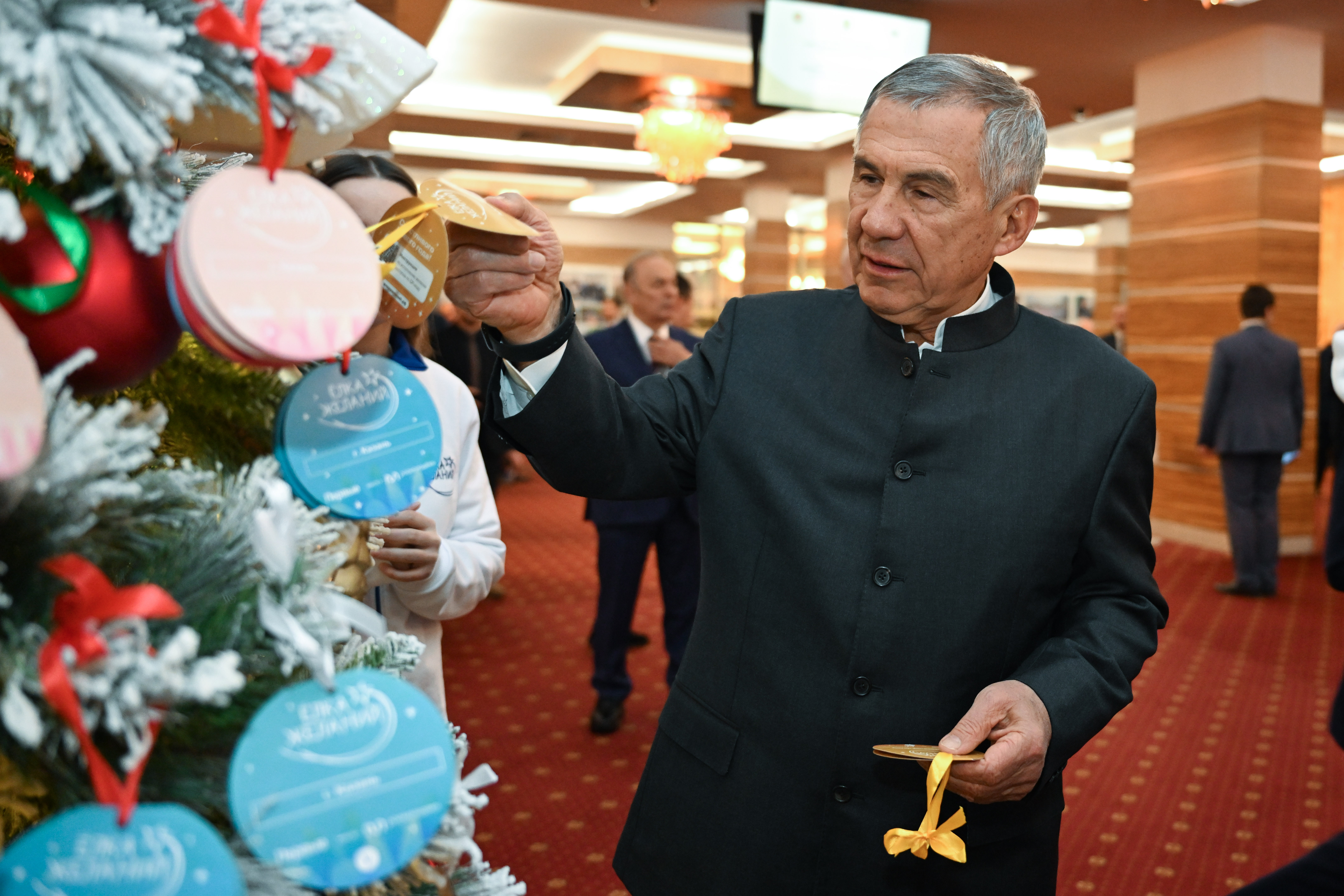 Глава республики снял с новогодней елки три открытки. Теперь благодаря раису заветные подарки получат пятилетний Егор из Набережных Челнов, он мечтал об игровой кухне; 12-летний Ранис из Казани, мальчик загадал беспроводную колонку и 9-летний Максим из города Рубежное (ЛНР), он получит шведскую стенку для занятий спортом.