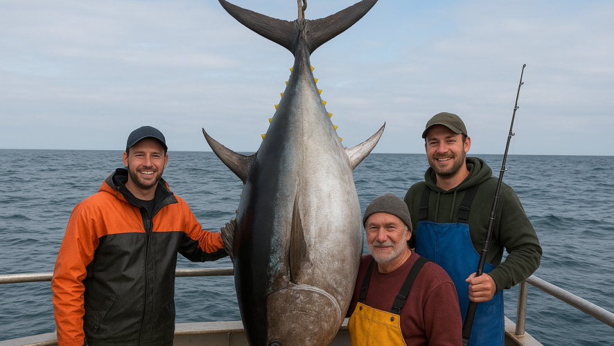 Это самая крупная особь тунца, выловленная в Великобритании в 2025 году. Улов сразу же продали на аукционе за две тысячи фунтов стерлингов (примерно 210 тысяч рублей).