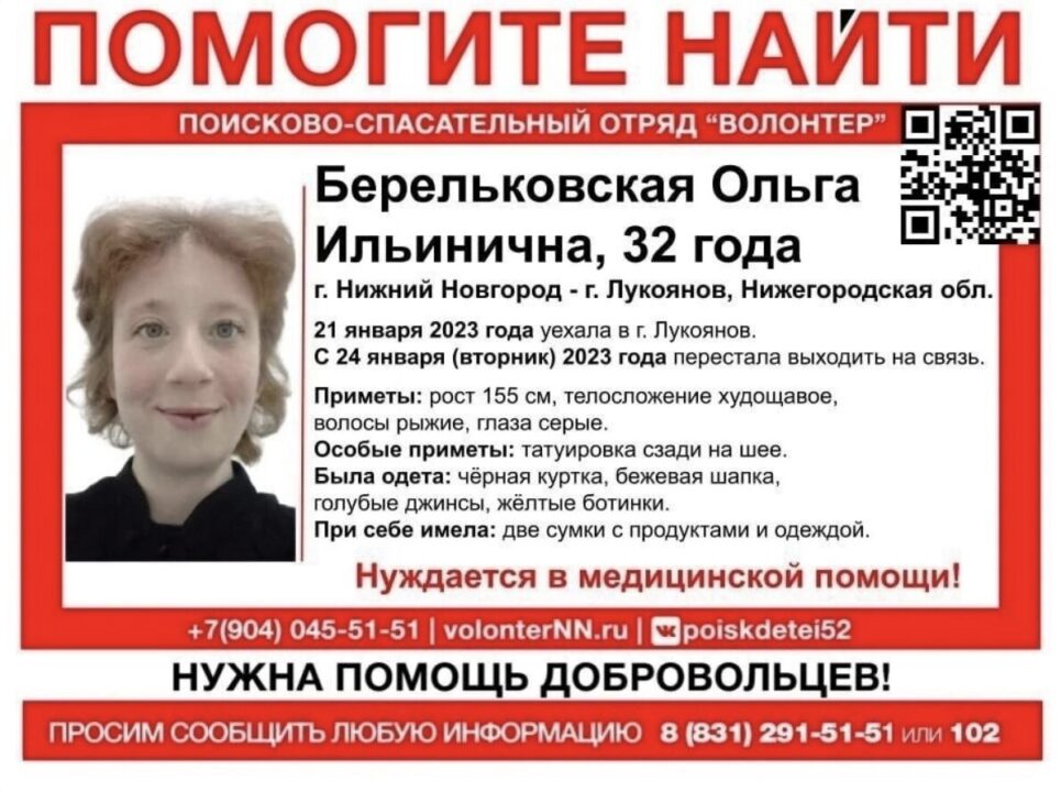 Первые ориентировки появились в январе прошлого года. В них отмечалось, что женщина не выходит на связь с близкими. Изначально предполагалось, что она уехала из Нижнего Новгорода в Лукоянов. Позже появилась информация о том, что женщину якобы видели в торговом центре «Фантастика».