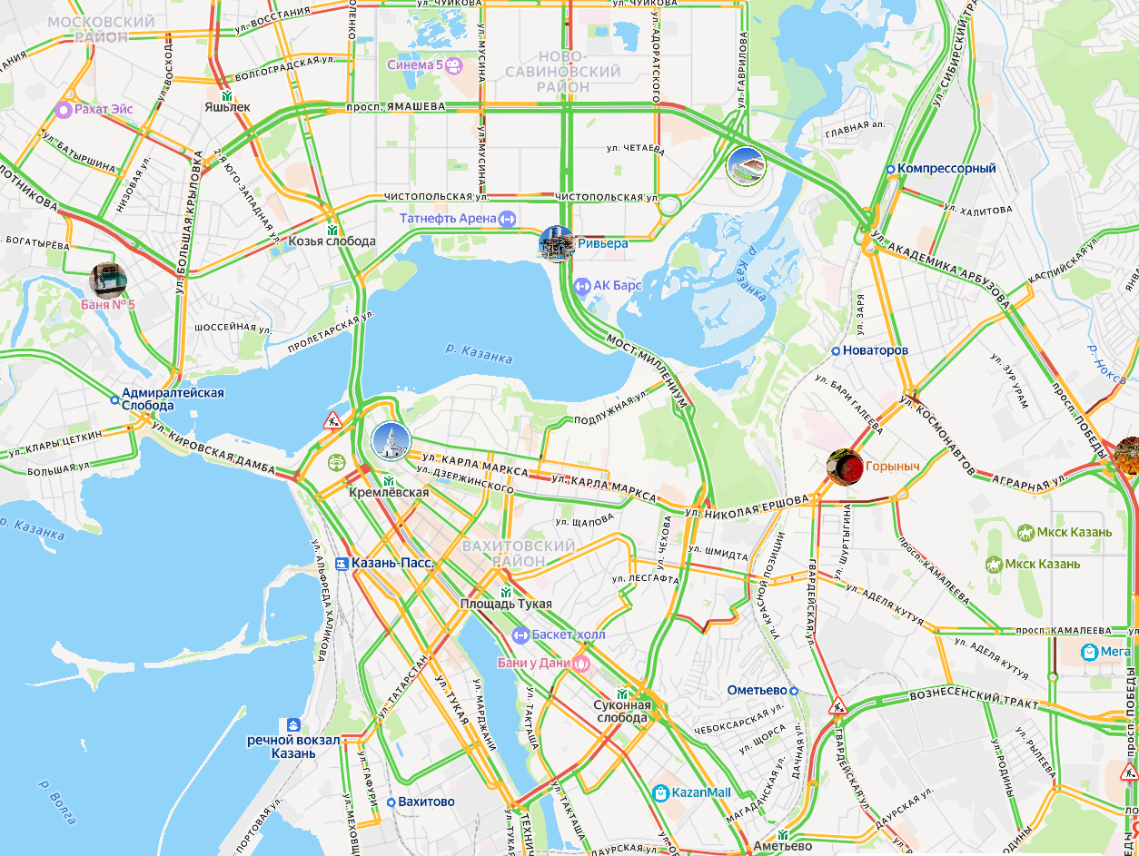 Тяжелее всего проехать на Пушкина, Бутлерова, Патриса Лумумбы, Проспект Победы, Нурсултана Назарбаева, Кировской дамбе, Вахитова, Восстания.