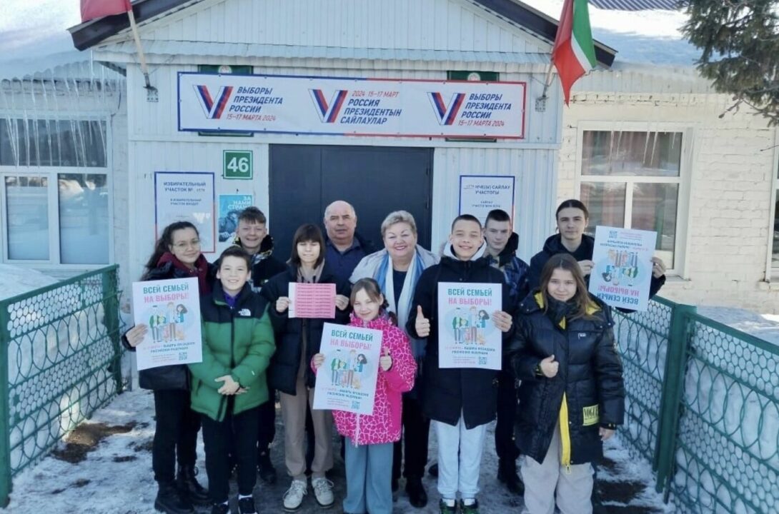 В Зеленодольском районе Республике Татарстан на выборах Президента России проголосовала многодетная семья Миннуллиных-Латыповых. Они проголосовали на избирательном участке №1578.