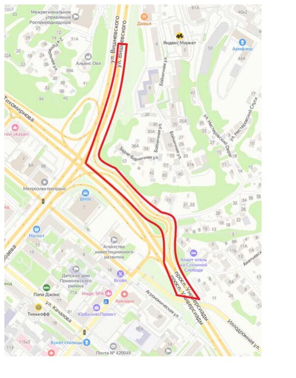Съезд с проспекта Универсиады на улицу Вишневского в Казани планируют расширить