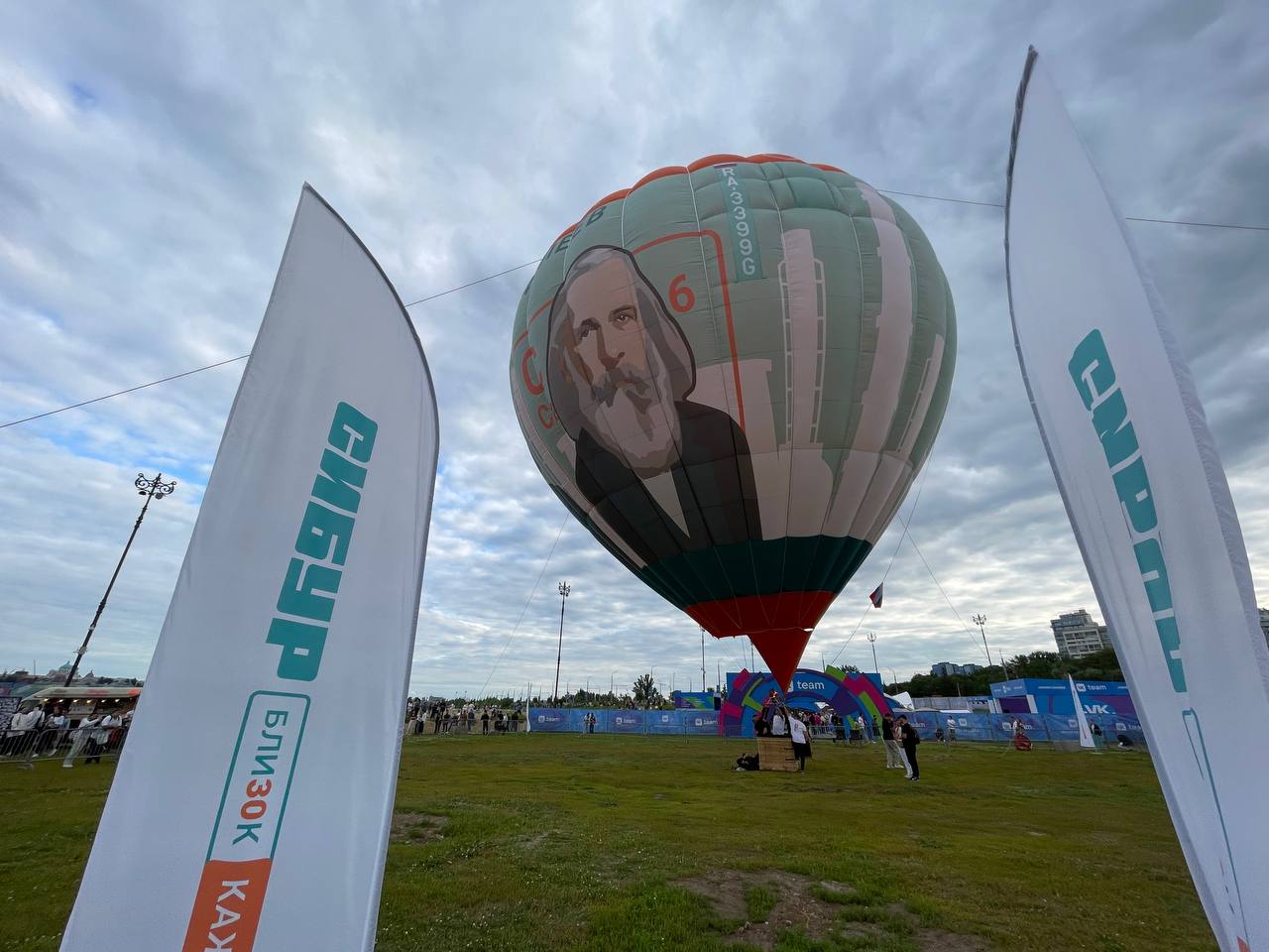 Аэростат стал доминантой площадки, который привлекает внимание участников — множество желающих могут сделать запоминающиеся фото на его фоне.