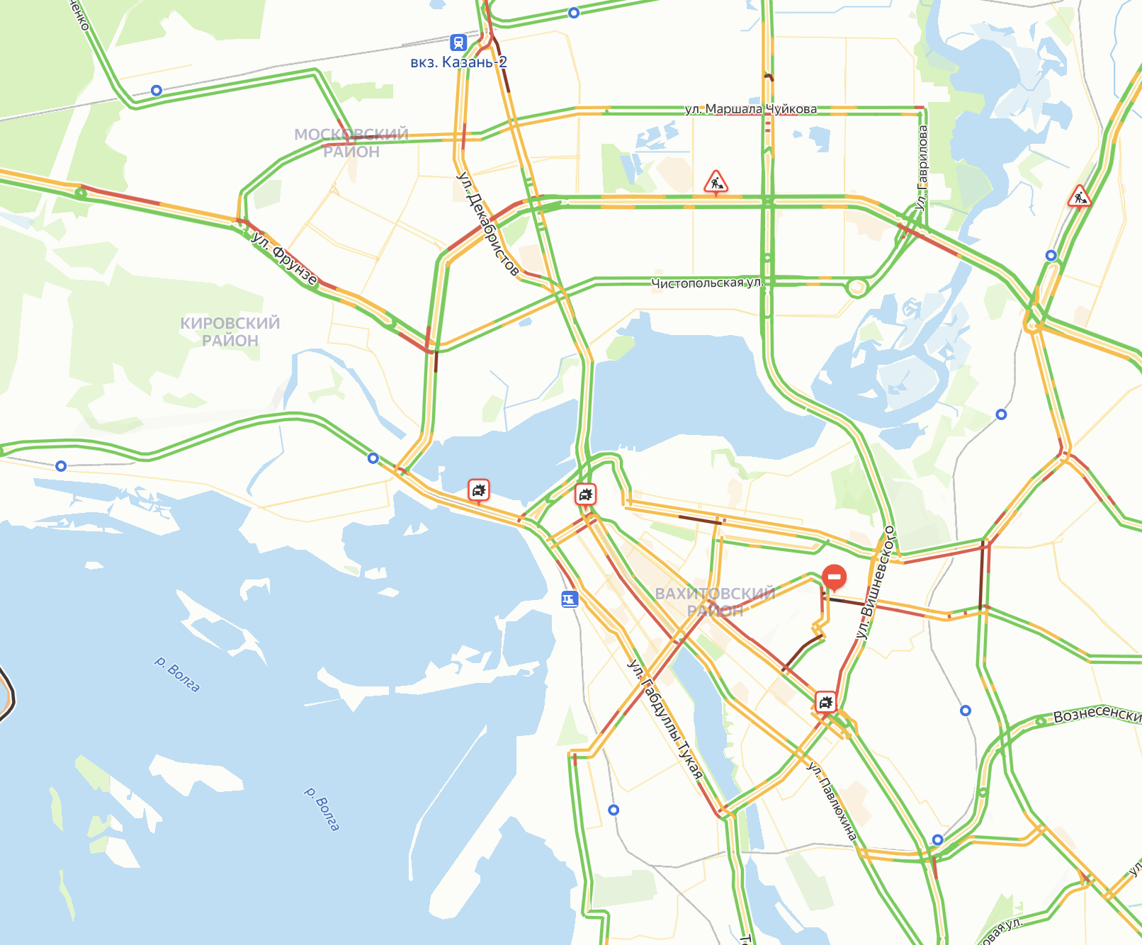Помимо этого, заторы есть и в Московском, Кировском и Приволжском районах города.