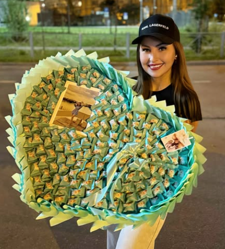 Но на этом подарки не закончились. 9 августа поклонник Риммы прислал ей огромный букет, который состоит из 300 конфет Рафаэлло. 11 августа ей пришла еще одна доставка — еще больший букет из сладостей, где примерно 500 конфет. 16 августа боец подарил еще один букет — на этот раз из зефира и леденцов.