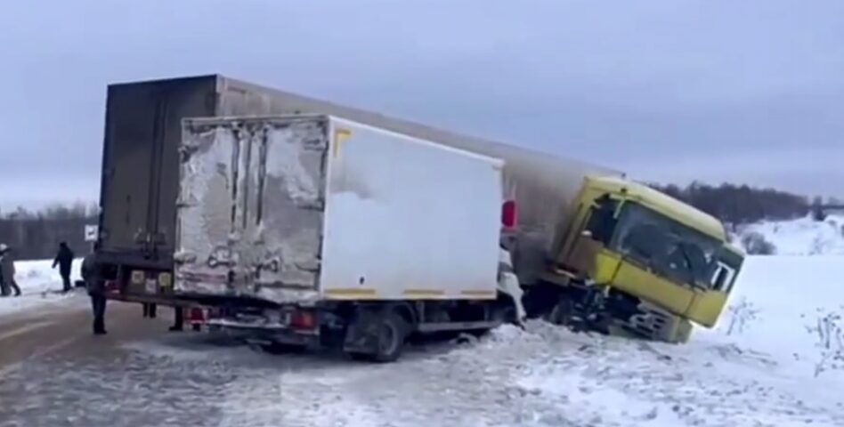 После столкновения с легковым Авто в «КАМАЗ» влетели ещё две фуры.