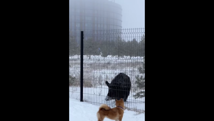 На кадрах видно огромного кабана, который разгуливал среди сугробов. Возможно, животное заблудилось. Оператора и кабана разделял забор, и к счастью, животное не напало. Рядом с оператором бегала собака, которая внимательно следила за вепрем.