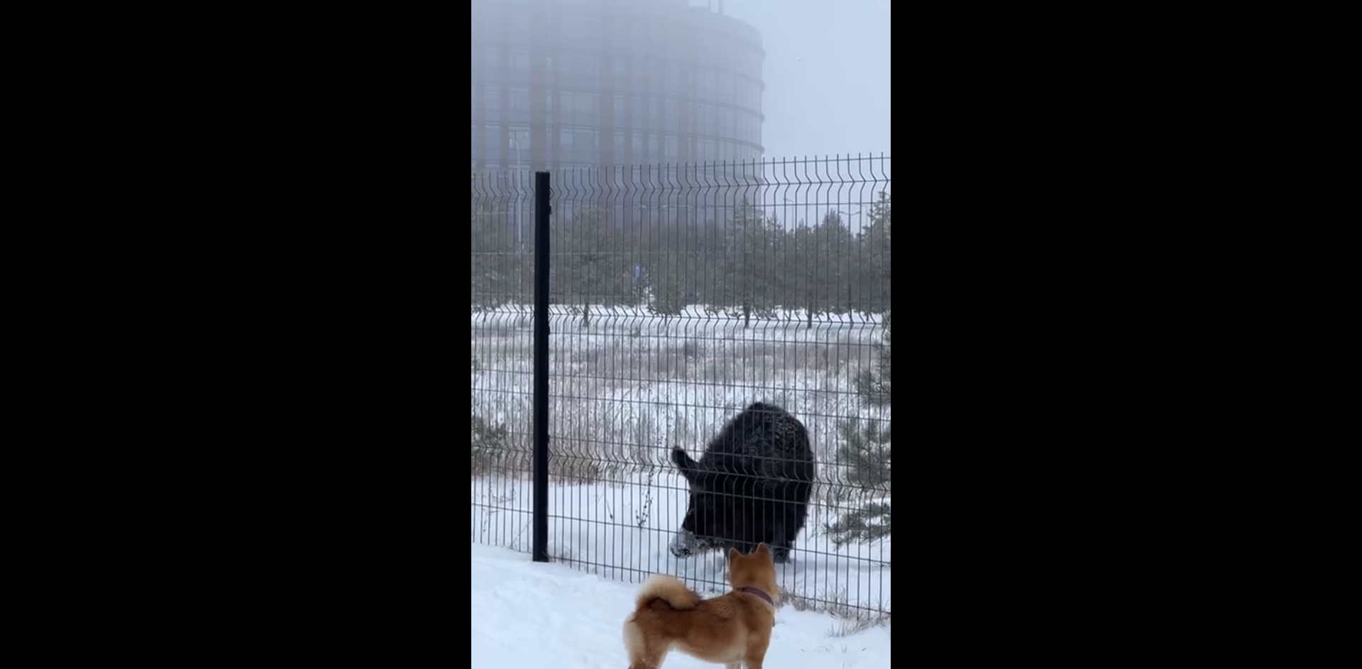 На кадрах видно огромного кабана, который разгуливал среди сугробов. Возможно, животное заблудилось. Оператора и кабана разделял забор, и к счастью, животное не напало. Рядом с оператором бегала собака, которая внимательно следила за вепрем.