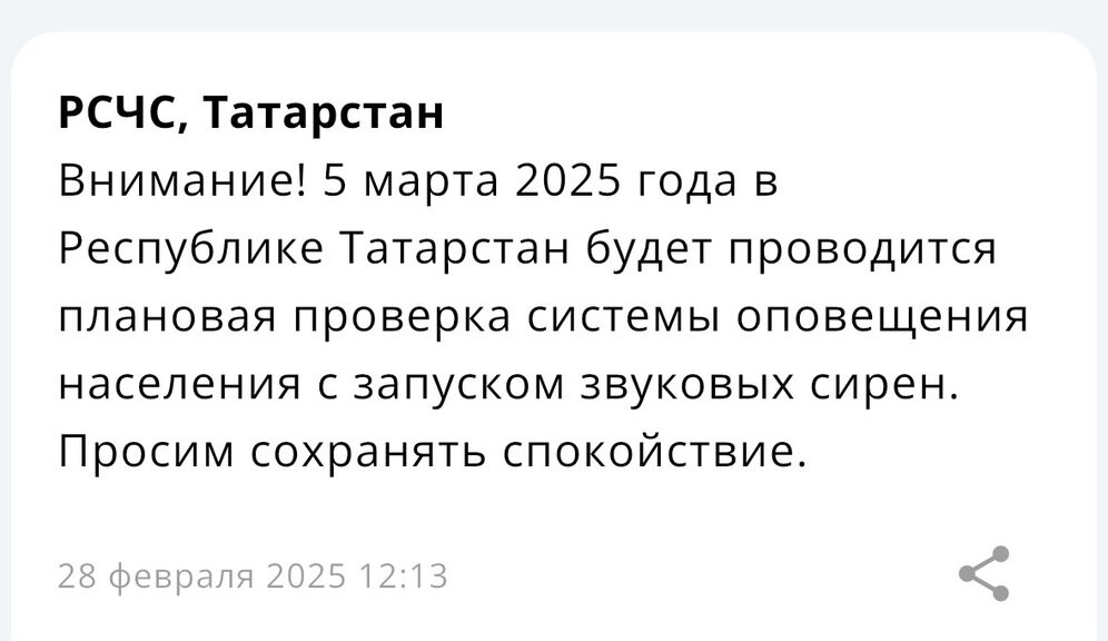 Ранее KazanFirst писал, что МЧС России проверит системы оповещения 5 марта.