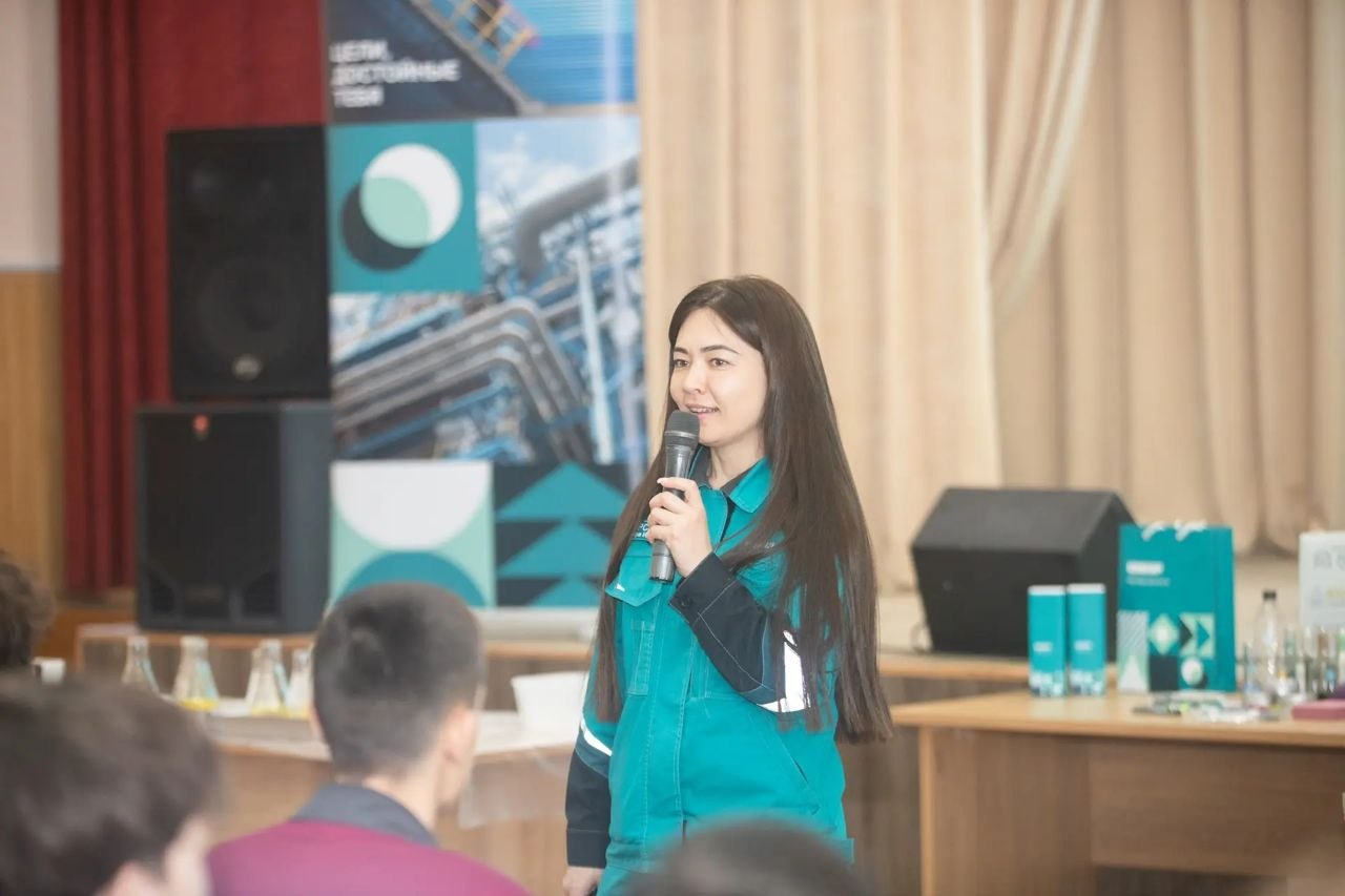 Самым зрелищным блоком стала демонстрация химических процессов в миниатюре. Студентам показали коррозию металла, смешав соль и медный купорос в алюминиевой посуде. На НКНХ тысячи километров трубопроводов, и защита от ржавчины — критически важная задача. А еще химики Центральной заводской лаборатории научили студентов КНН обезвреживать йод. При смешивании воды с крахмалом и йодом жидкость в колбе окрасилась в темный цвет. Но стоило добавить аскорбиновую кислоту, и жидкость мгновенно посветлела. Благодаря простому опыту токсичный йод максимально нейтрализовали, сделав безопасным для окружающей среды. Нефтехимики организовали даже «торнадо в стакане» — на этом примере объяснили, как обезвреживаются жидкие отходы в инсинераторе нового этиленового комплекса. Студенты узнали, что такое лава-лампа (вода, масло, краситель и аскорбиновая кислота) — так наглядно показали процесс ректификации, который происходит на биологических очистных сооружениях. А опыт «пенный потоп» — смешивание в стакане соды, уксуса, воды и моющего средства — продемонстрировал выделение углекислого газа.
