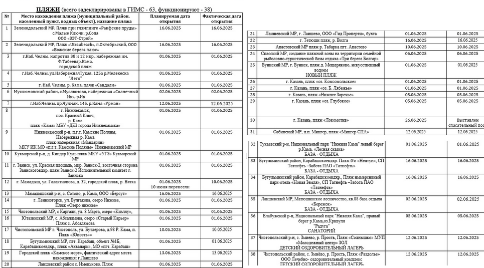 Всего, по данным специалистов, до 1 июля на территории Татарстана должны быть открыты 63 пляжа.