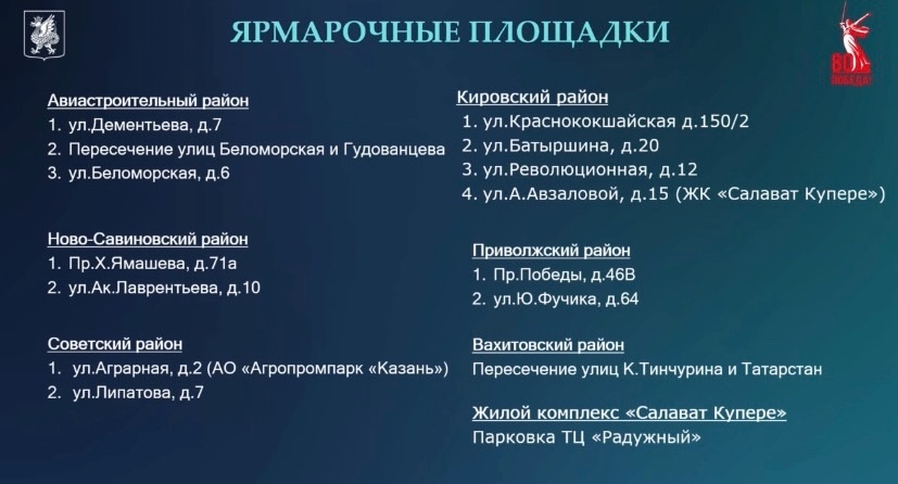 Ярмарки будут проходить еженедельно по субботам на 17 площадках. Фазылянов отметил, что в этом году откроются две новые площади для торговли в «Салават Купере» и на Беломорской, 6.