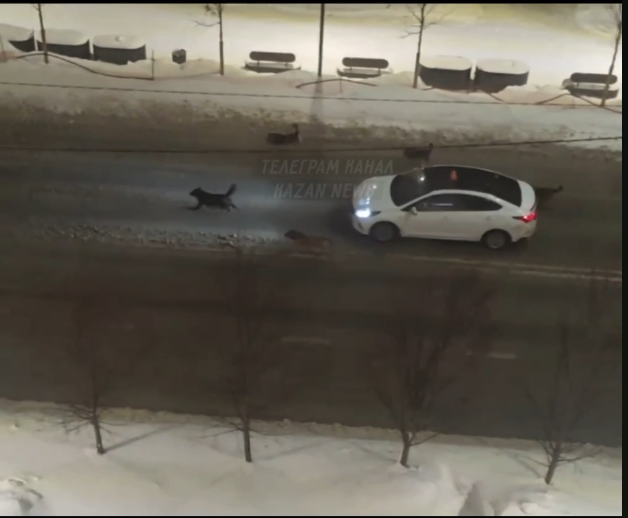 В Казани на улице Островского появились собаки, которые свободно бегают и иногда бросаются на проезжающие машины. Об этом сообщают очевидцы в социальных сетях.
