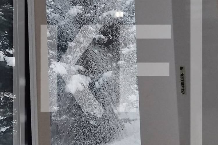 На кадрах видно, что стекла потрескались, некоторые из них даже выпали из рам.