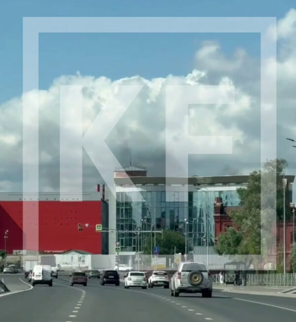 На кадрах видно облако черного дыма, поднимающееся за зданием предприятия или изнутри. Что именно загорелось — пока не сообщается.