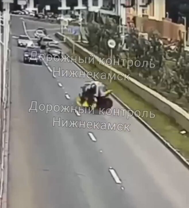 На видео можно заметить, как водителя и пассажира после удара откинуло в разные стороны. После этого один из них встает с земли. Однако состояние всех участников ДТП неизвестно.