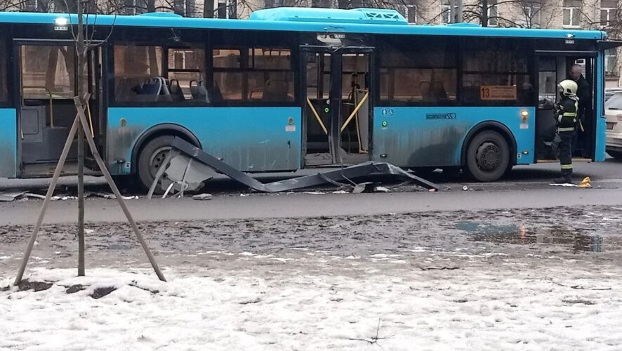 Кадры с места происшествия показывают последствия серьезной аварии в Санкт-Петербурге, где городской автобус врезался в остановку общественного транспорта возле станции метро «Московская».