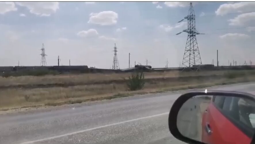На кадрах, размещенных в соцсетях, видно, что большая часть состава сошла с рельсов и завалилась.