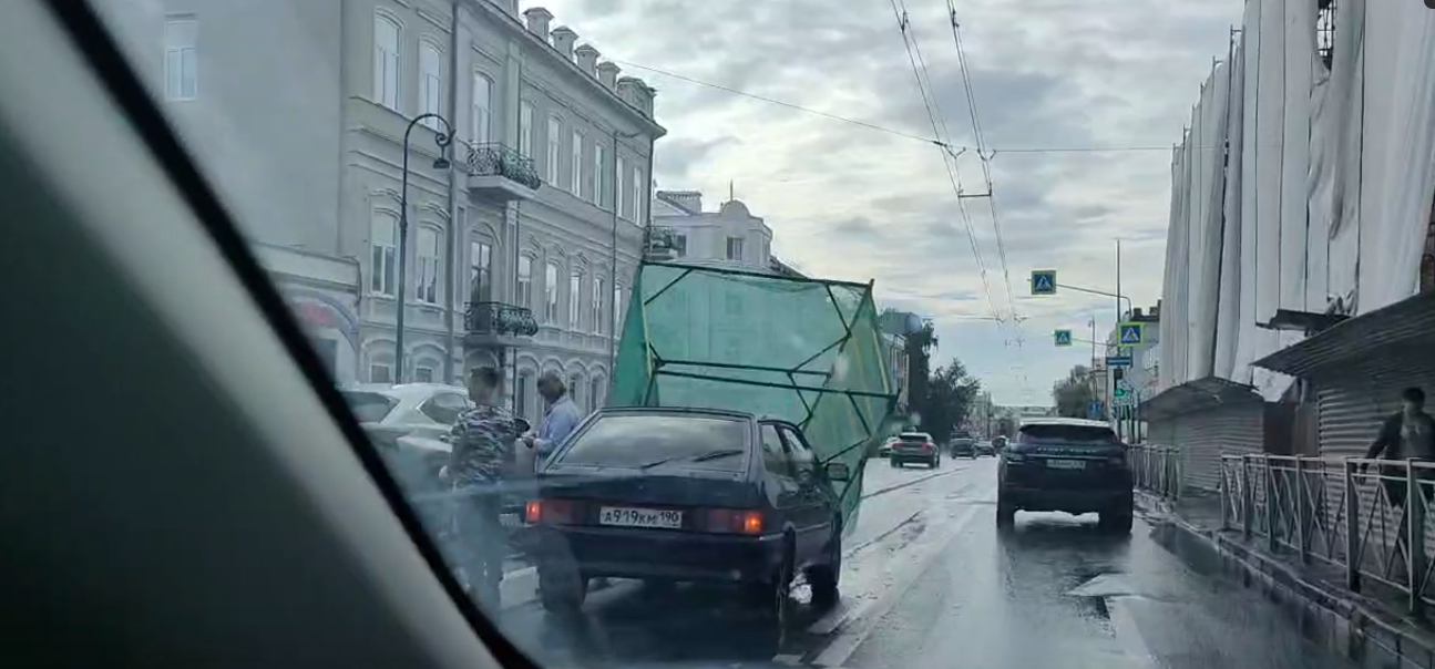 Как стало известно, инцидент произошёл на улице Карла Маркса. Судя по кадрам, машина стоит посреди дороги неподвижно. На неё упали строительные леса, рядом стоят двое мужчин.
