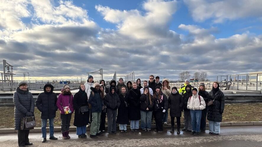 Во время ознакомительной экскурсии студенты смогли увидеть, как работают ключевые узлы комплекса: аэротенки, первичные и вторичные отстойники, илоуплотнители, решетки и песколовки, а также здание для обезвоживания песка.