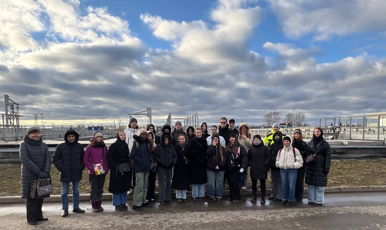 Во время ознакомительной экскурсии студенты смогли увидеть, как работают ключевые узлы комплекса: аэротенки, первичные и вторичные отстойники, илоуплотнители, решетки и песколовки, а также здание для обезвоживания песка.
