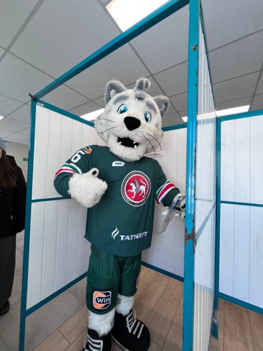 Сегодня, 16 марта, талисман казанского хоккейного клуба «Ак Барс» проголосовал на выборах Президента Российской Федерации. Необычного гостя заметили очевидцы.
