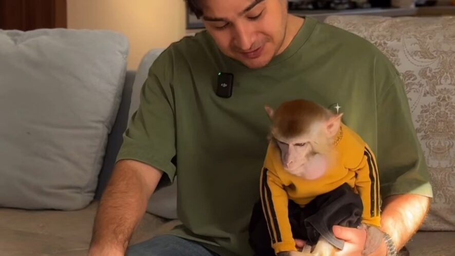 Татарский певец Данир Сабиров показал свою домашнюю обезьянку Маратика