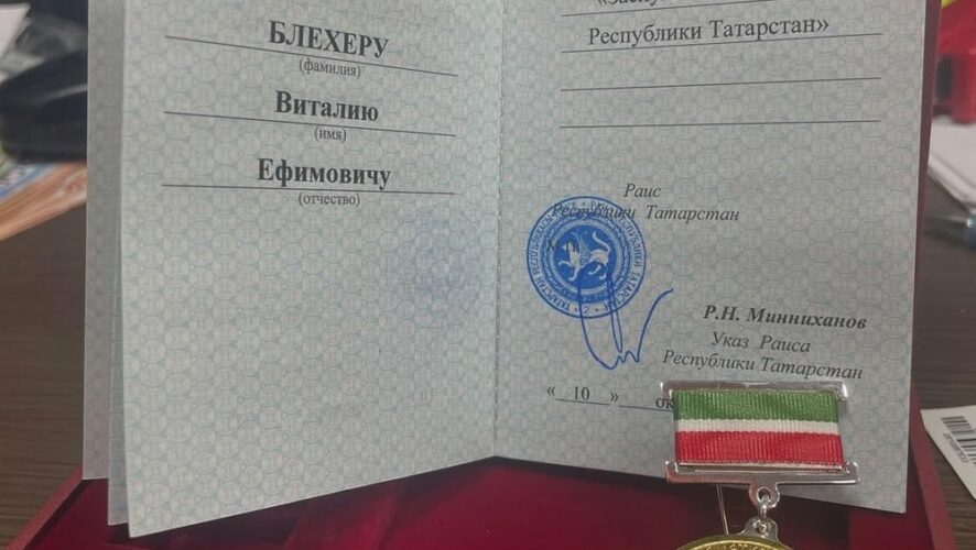 Популярный певец татарской эстрады Винарис Илъегет удостоился звания заслуженного артиста Татарстана. Награду ему вручили в новом здании театра им. Камала. Об этом рассказал сам певец в своих социальных сетях. Винарис Илъегет — его псевдоним, настоящее имя певца — Виталий Блехер.
