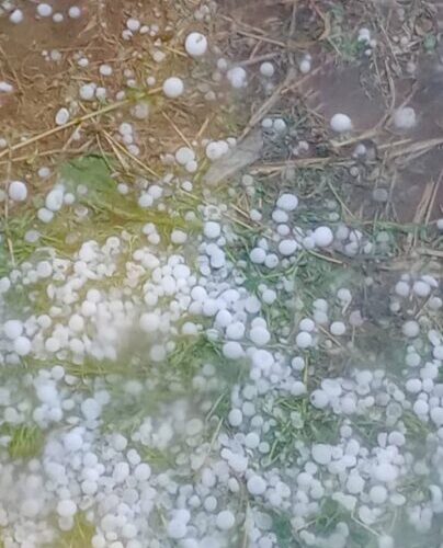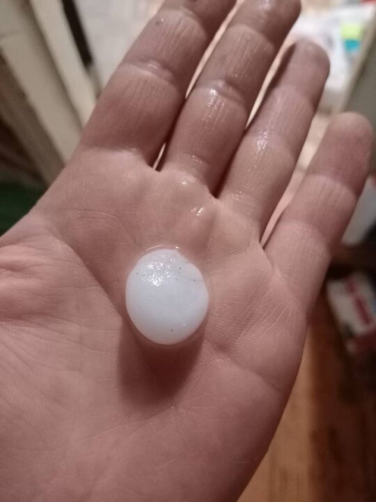 На кадрах видно, что куски льда похожи на маленькие камни. А в руках человека можно убедиться, что град с размеров в перепелиное яйцо.