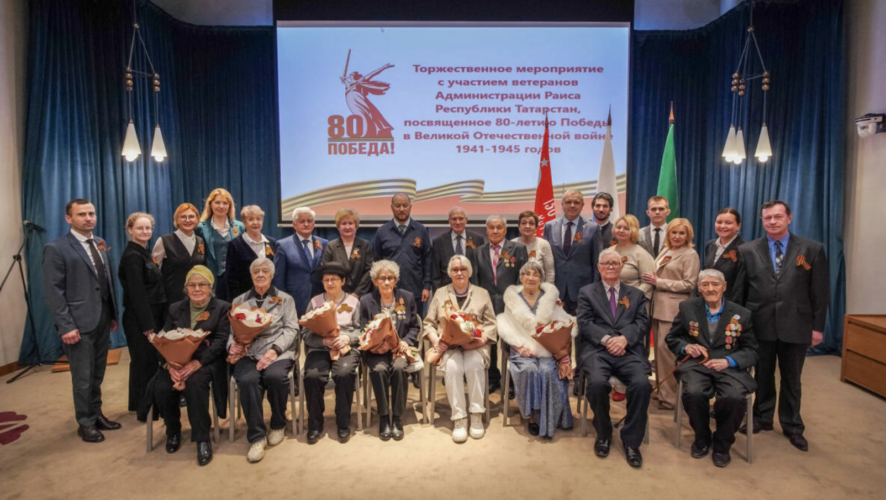 Сегодня в Присутственных местах Казанского Кремля руководитель администрации раиса Татарстана Асгат Сафаров провел встречу с представителями ветеранской организации администрации раиса РТ. Мероприятие приурочили к празднованию 80-летия Победы.
