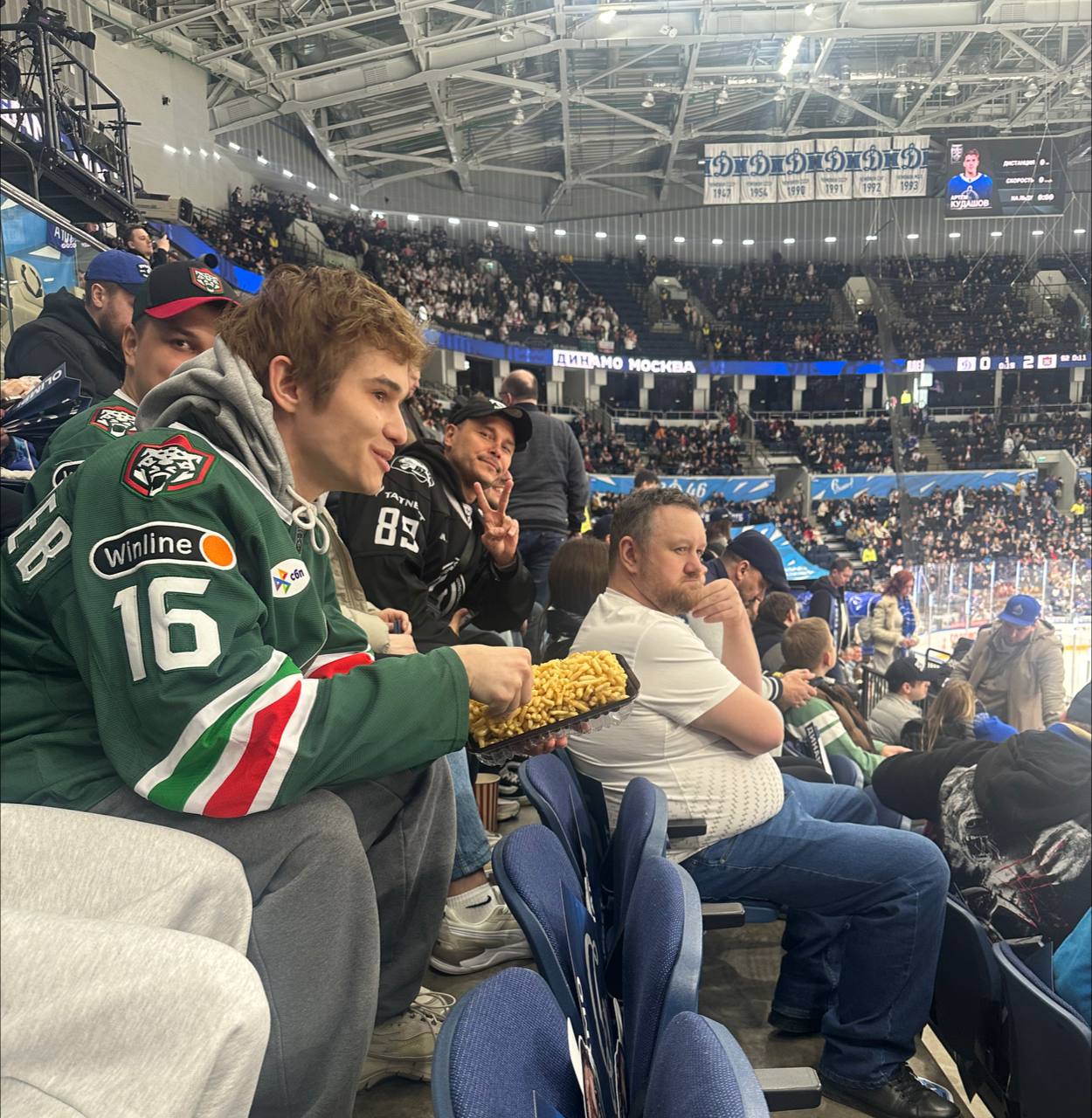 Известные артисты из Татарстана были замечены на трибунах московской «ВТБ Арены» во время первого матча 1/4 финала Кубка Гагарина между столичным «Динамо» и казанским «Ак Барсом».