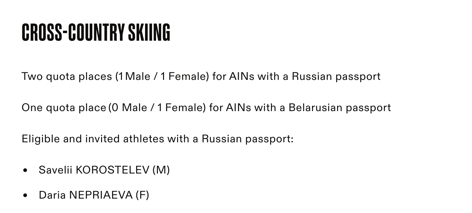 Спортсмены с декабря 2025 года принимают участие в соревнованиях от Международной федерации лыжного спорта и сноуборда. Оба из них получили несколько квот на Олимпиаду.