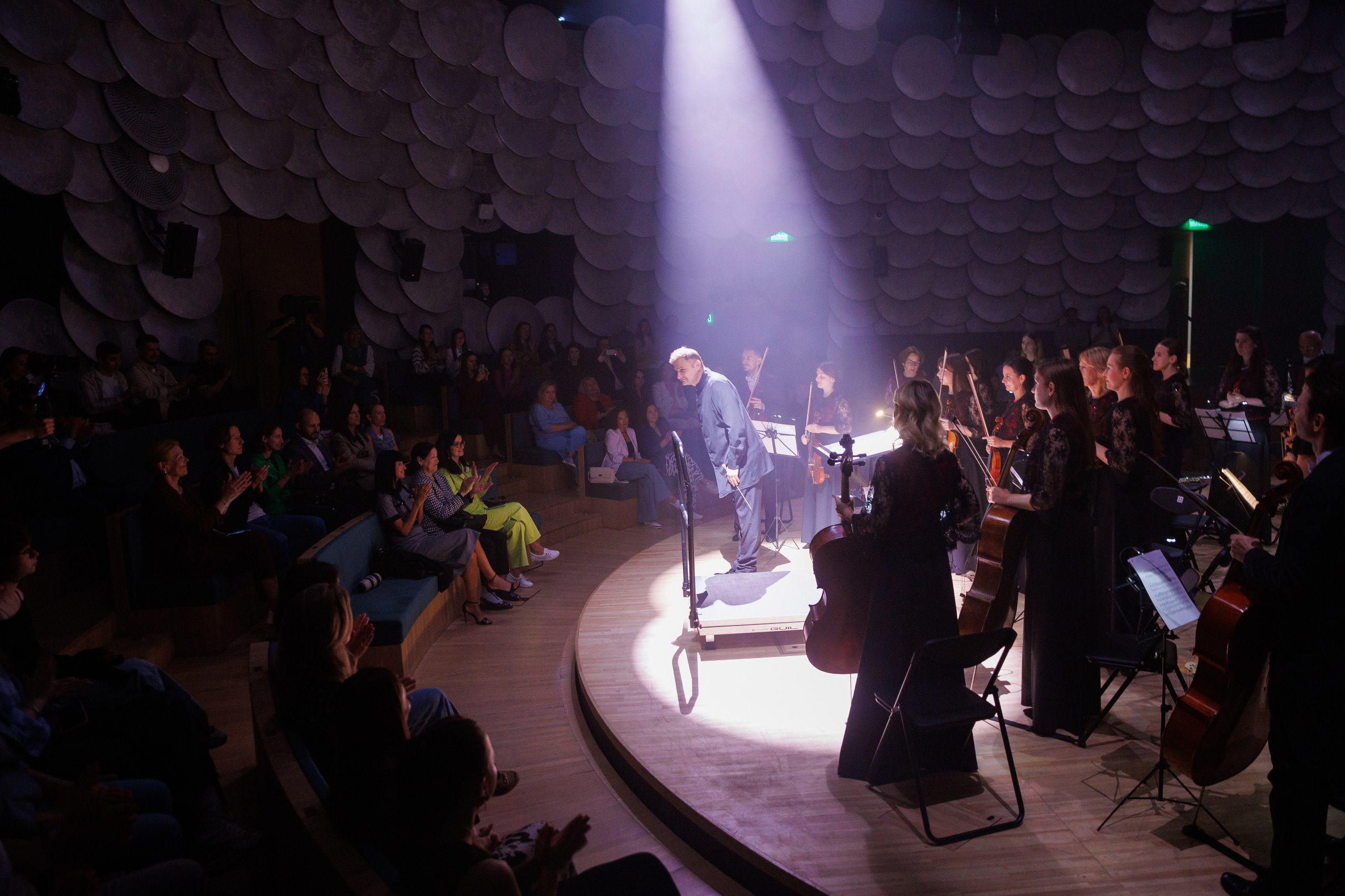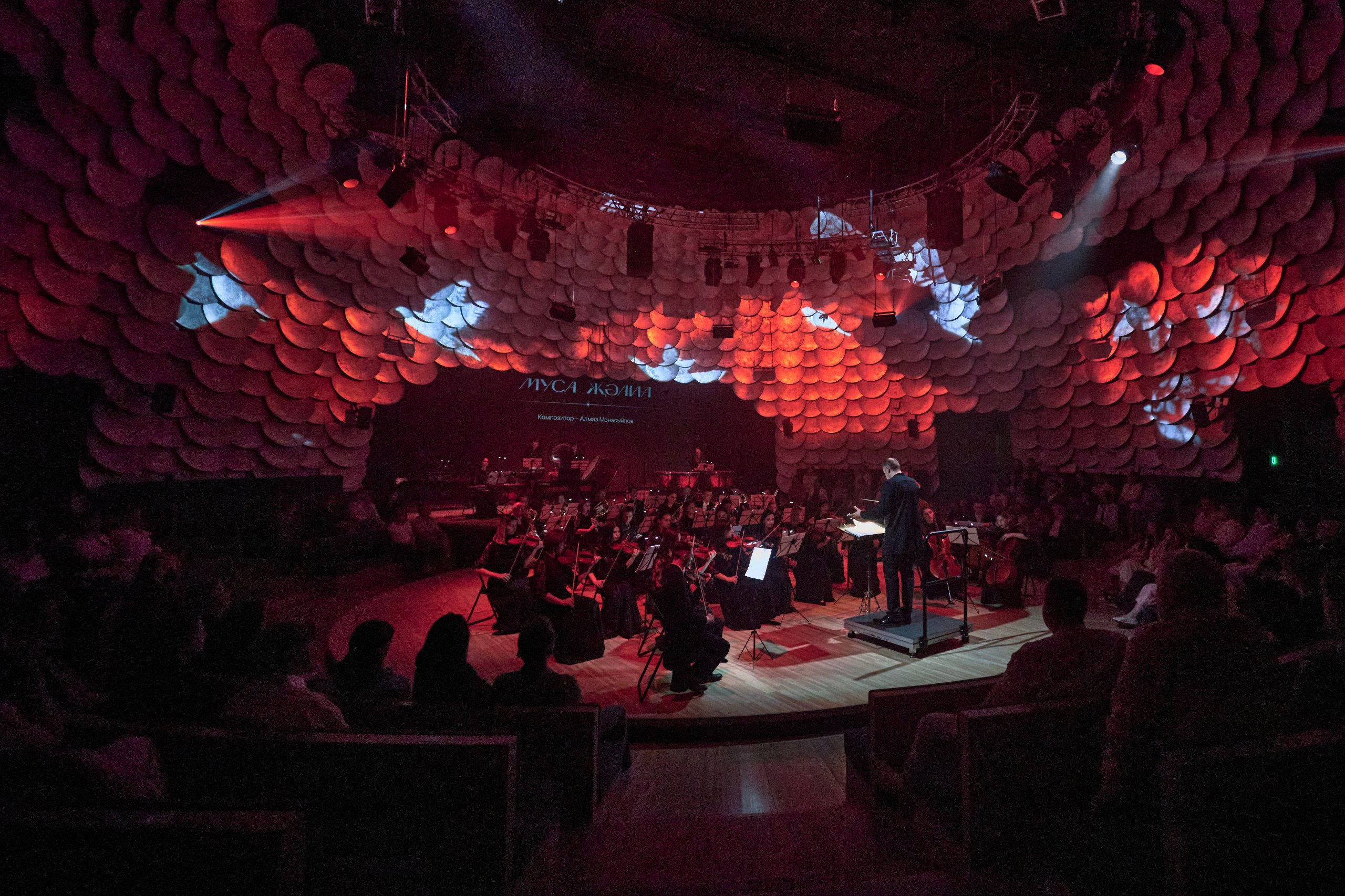 – Новое здание, оснащенное современным оборудованием и проекционными системами, позволило нам реализовать самые смелые идеи, – поделился главный дирижер и художественный руководитель оркестра театра им. Г. Камала Данияр Соколов. – В перформансе «Яктылык моңы» мы совмещаем музыку и современные мультимедийные технологии в единое творчество. Весь контент – музыкальный и визуальный – был подготовлен под исполнение в новом здании театра им. Камала. Восточный зал круглой формы на 360 градусов создает необычный сценический эффект: у зрителей складывается ощущение, что они сидят в центре оркестровой ямы, а трансляция визуальных образов на стены оживляет пространство, создавая эффект полного погружения в действие. Это не просто академический концерт, это визуальная и звуковая магия.