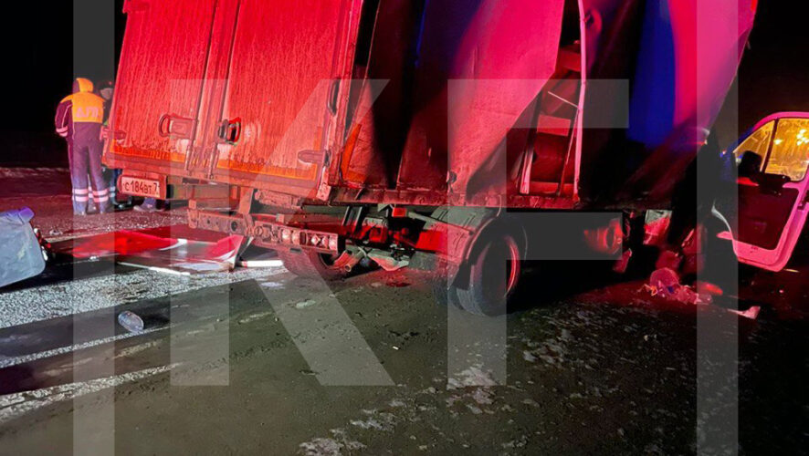 На кадрах видны сильно поврежденные в результате лобового столкновения минивэн и «Газель», а также работа экстренных служб на месте происшествия.