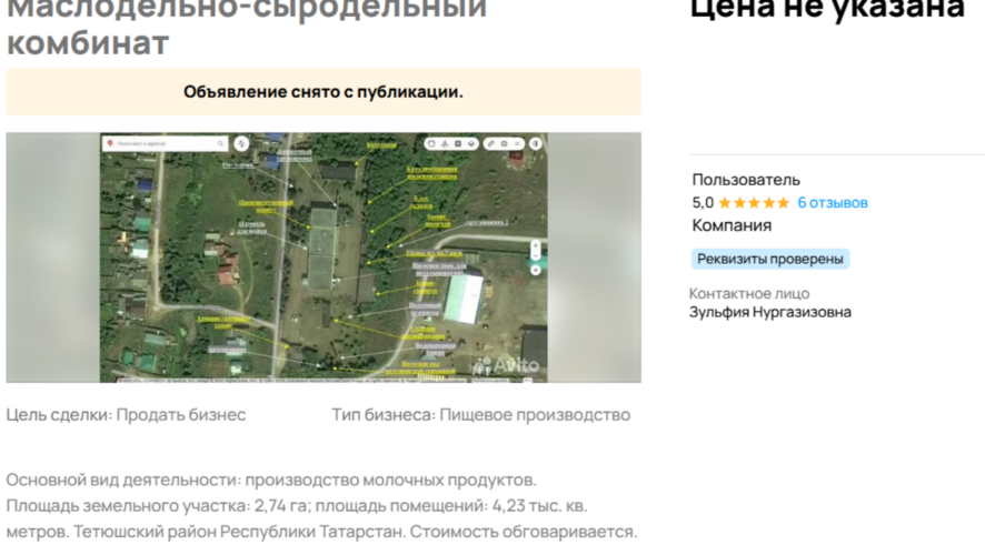Минземимущество Татарстана выставило на продажи Тетюшский маслодельно-сыродельный комбинат. Начальная стоимость всего комплекса составляет 11 882 100 рублей. Торги стартуют 25 мая 2026 года.