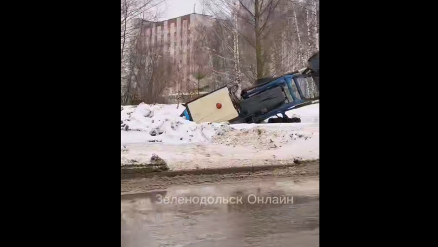Необычный инцидент произошёл сегодня на улице Сайдашева. На кадрах видно, что техника заехала на участок у дороги, там раньше был источник с холодной водой. Вероятно, размякшая земля не выдержала веса трактора, рухнув под землю.
