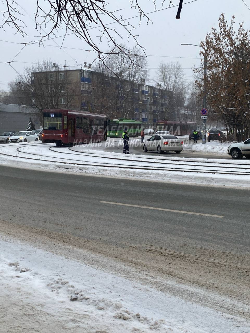 В Казани на улице Кулагина произошла массовая остановка трамваев и троллейбусов. По предварительным данным, причиной стал обрыв проводов контактной сети.